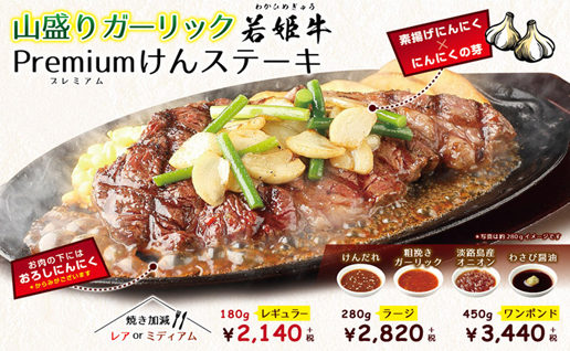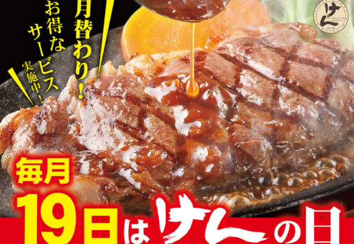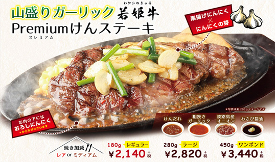 けんでご提供するステーキ肉は、輸出認定基準をクリアしたブランド肉より、更に購買担当者の厳しい目で選別し、ご提供しております。ほぼ全てのステーキ肉が原木のまま店舗へ納品され、お店で切り分けてご用意しております。そうすることで鮮度を保ち、一番美味しい肉本来の味をお楽しみ頂けるからです。また、けんのサラダバーでご提供する野菜は、当社契約メーカーの自社農場にて生産し、生産〜搬入までを一元管理されており、当社規定での安心・安全基準をクリアした商品のみ店頭へ並ぶため、新鮮で安全な野菜のみをご提供しております。