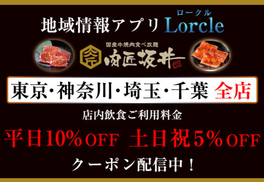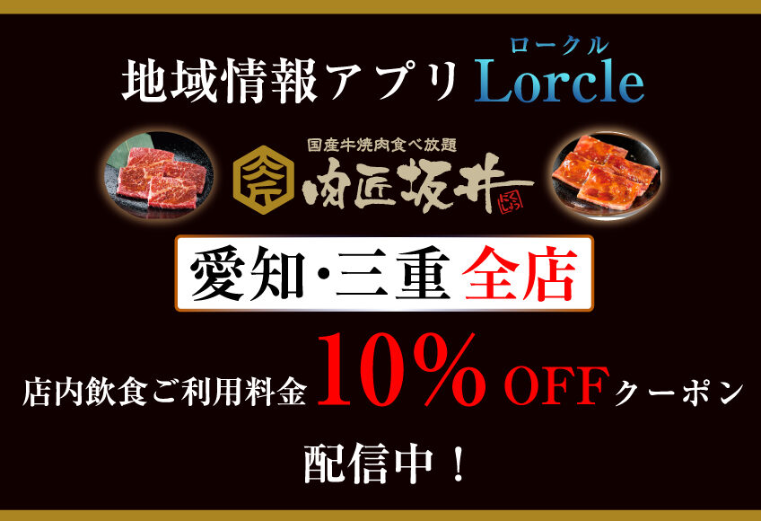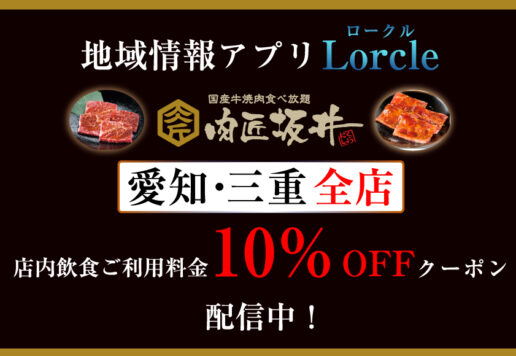 地域情報アプリ「Lorcle(ロークル)」にて 肉匠坂井 愛知県・三重県内全店でご利用できます「店内飲食ご利用料金 10%OFFクーポン」配信中です。 お会計の際にクーポンをご提示ください。 「Lorcle(ロークル)...