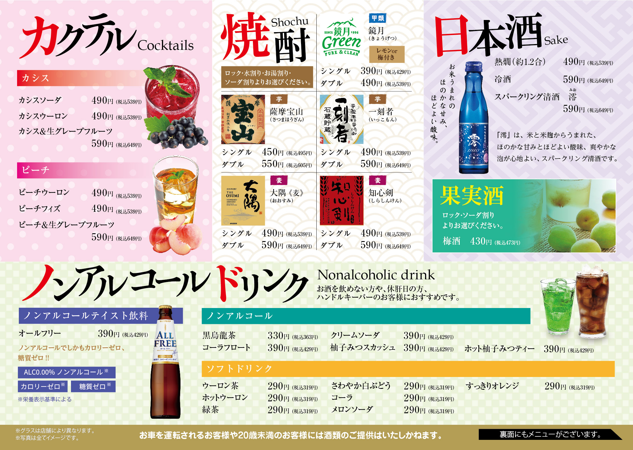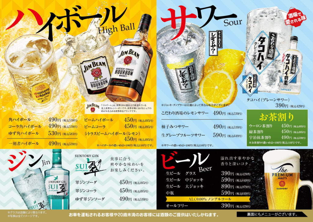 ※一部、実施していない店舗がございます。店舗へお電話にてご確認ください。 ※写真はイメージです。 ※季節・店舗によりメニューが異なる場合もございます。 ※一部ドリンクバーの店舗がございます。