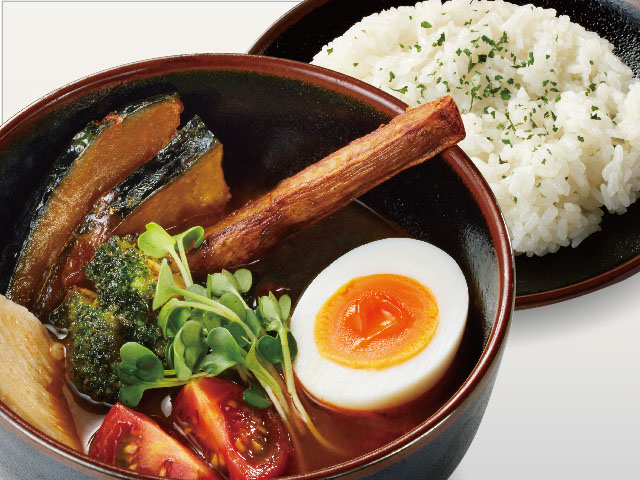 “ 栗じゃがいも”と呼ばれるほど甘くてホクホクのきたあかりをバターホイルでお召し上がりいただけます。 北海道スープカレー 890円(税込979円)