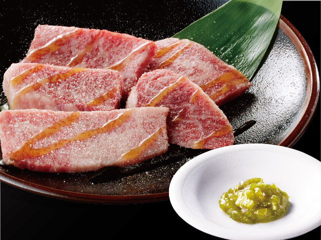 「ふらの和牛」をきざみわさびのシャキシャキとした歯触りとピリッとした辛味と共にお楽しみください。 ゆめの大地ロース(たれ・塩だれ) 各590円(税込649円)