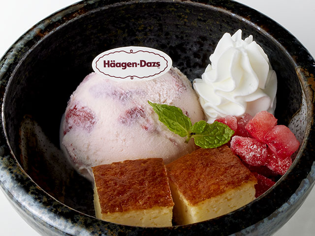 札幌の居酒屋さんでは定番のメニューの“ラーメンサラダ”を焼肉メニューでアレンジしました。 ハーゲンダッツ アイスクリーム ストロベリー&ベイクドチーズケーキ添え